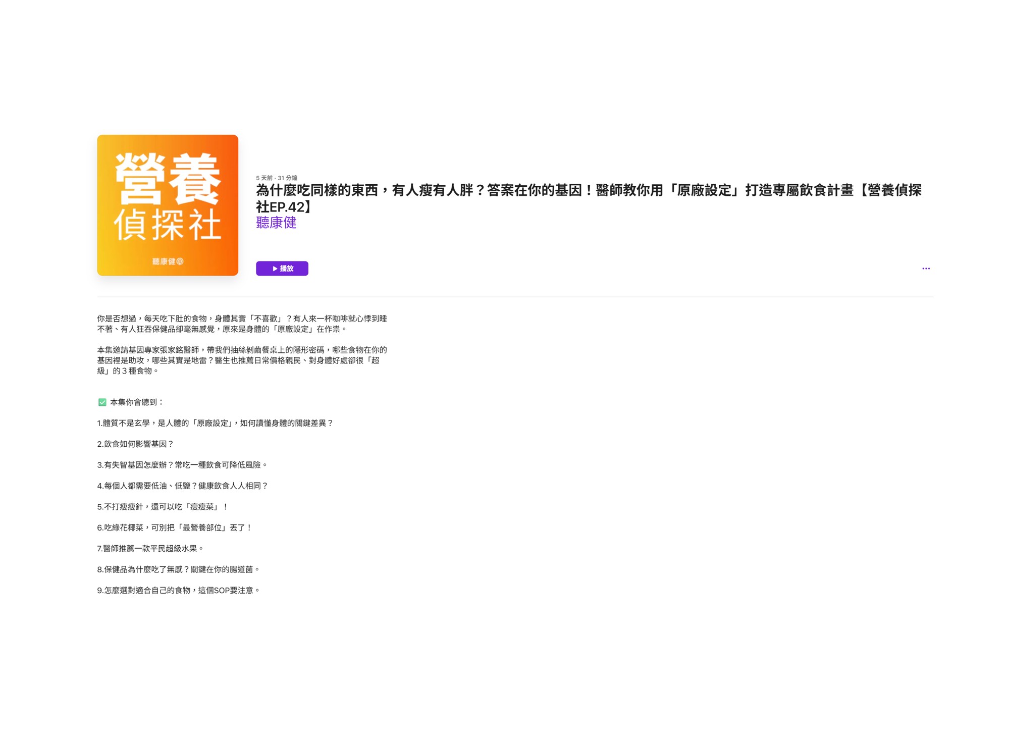 這集 【營養偵探社】Podcast,我教大家掌握善用自己的「原廠設定」