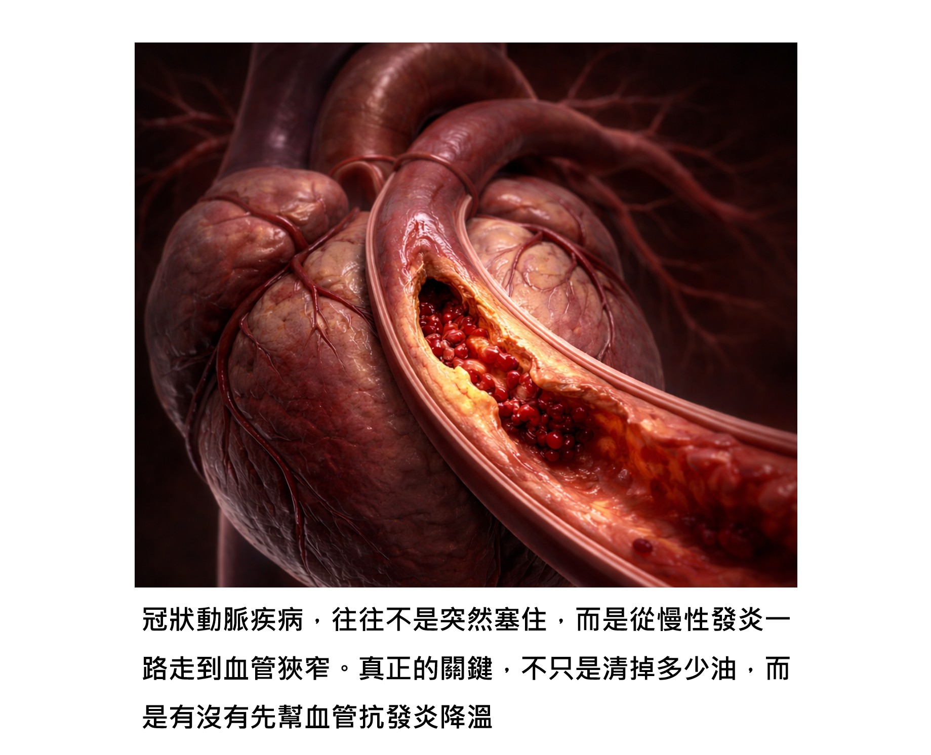 冠狀動脈疾病,是從慢性發炎一路走到血管狹窄,那生活策略就一定要改。
