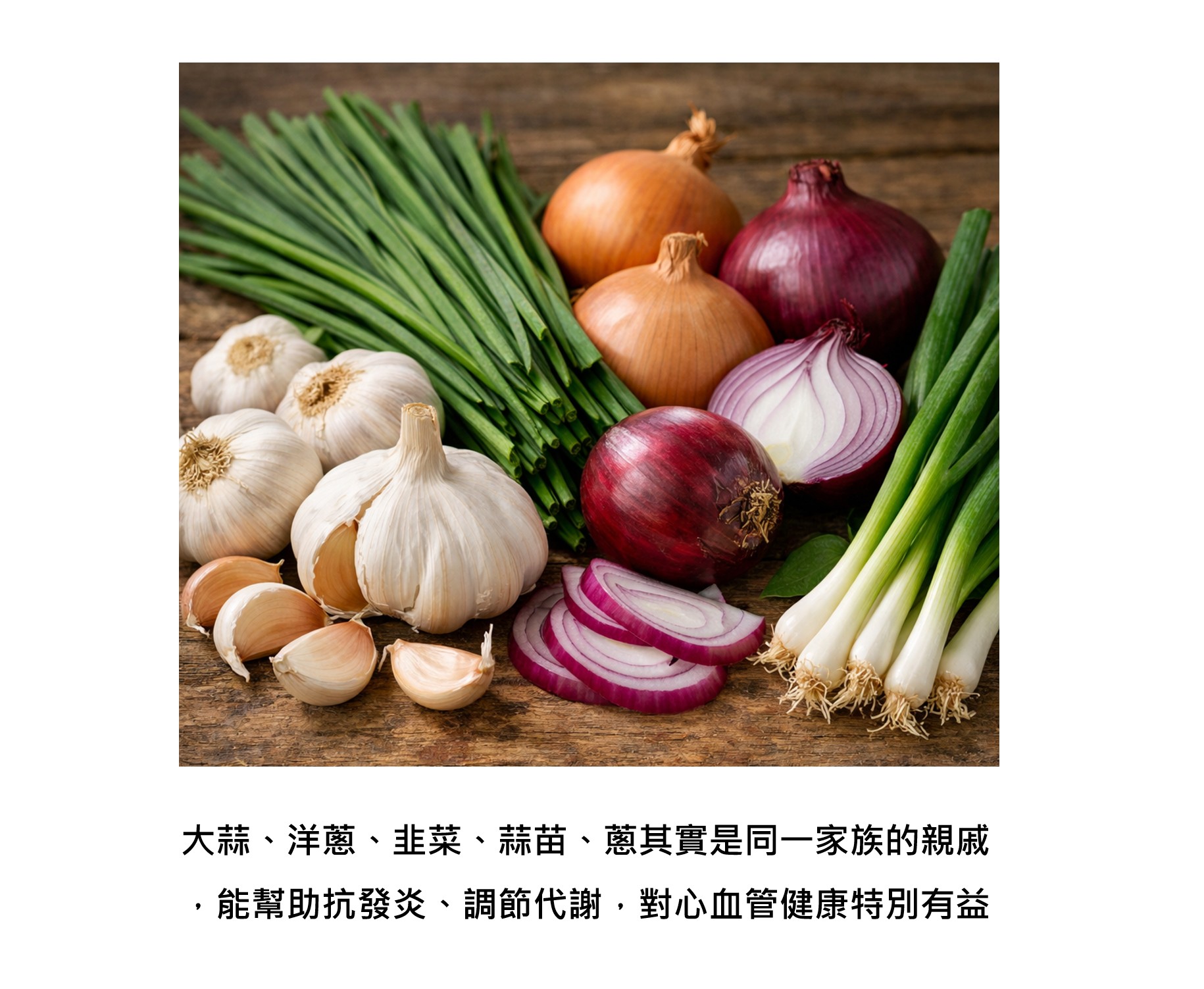 大蒜、洋蔥、韭菜、蒜、青蔥 原來是親戚 - 它們正在一起抗發炎與防止血管老化