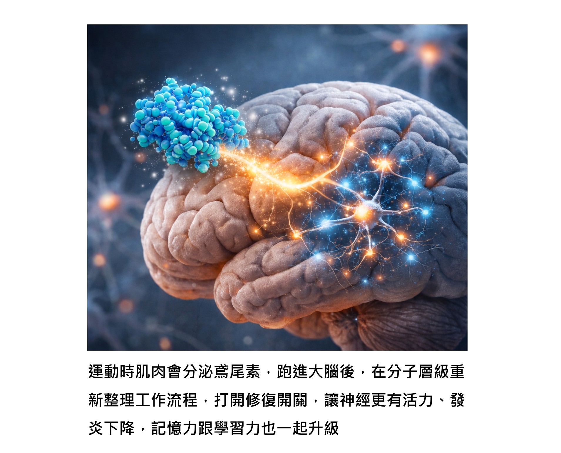 從分子層級來看,鳶尾素進入大腦之後,啟動的不是單一反應,而是一整套護腦工程。