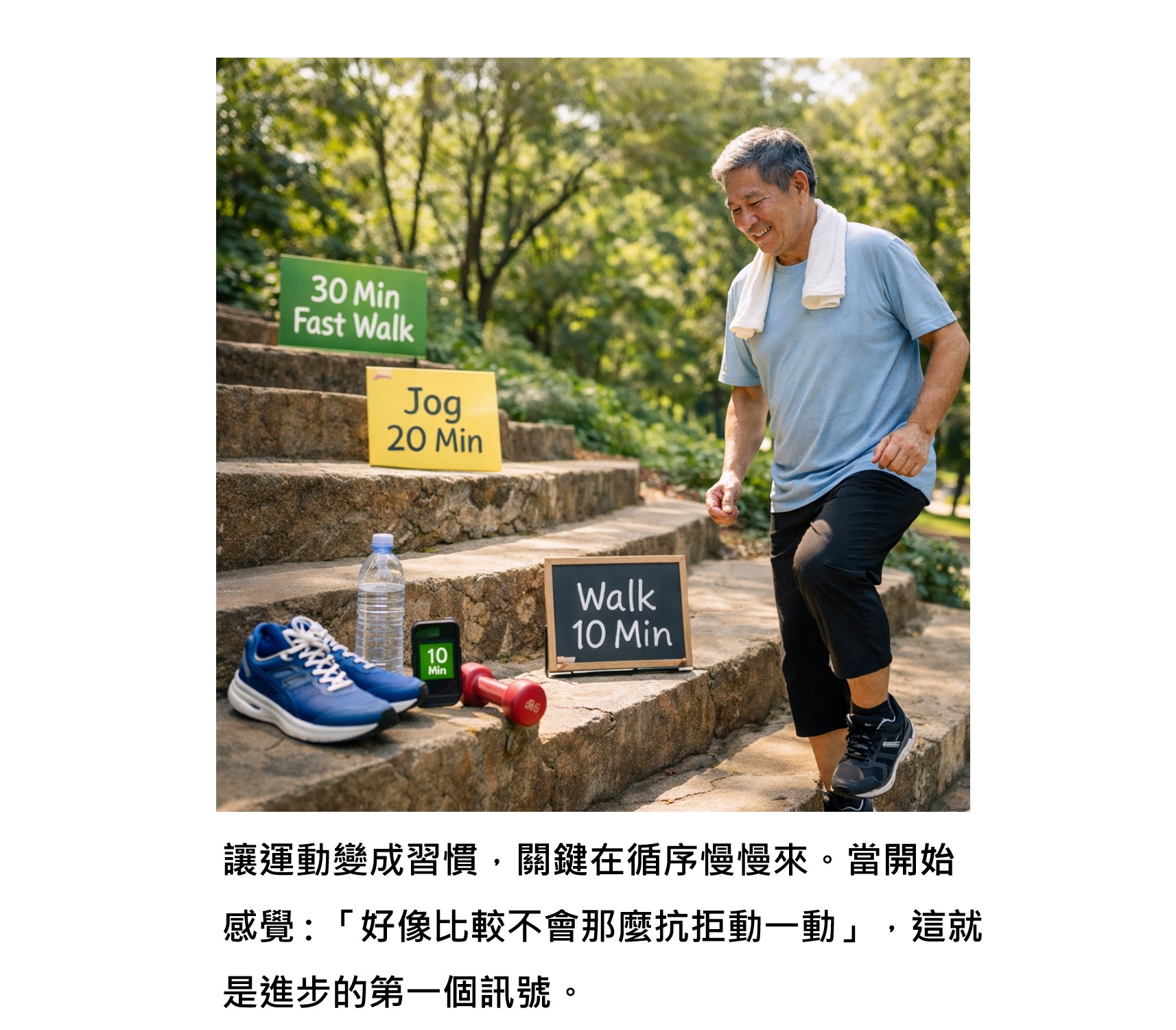 說這句話的人,其實都很認真,也很在意健康。只是生活太忙、身體太疲勞,一開始就把目標設得太高,結果還沒走多遠,心裡就先退了一步。