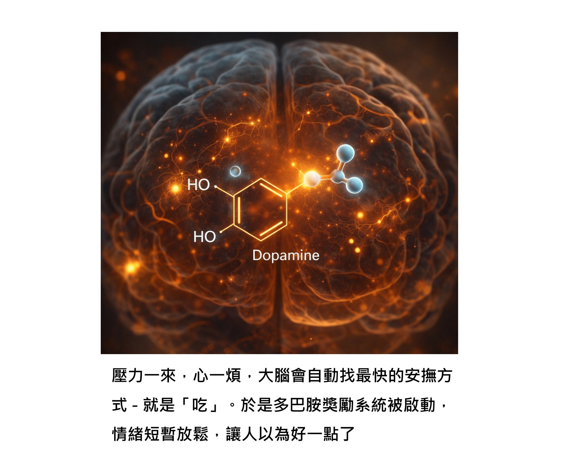 食物入口,多巴胺的獎勵系統立刻被啟動,心情真的會鬆一下。