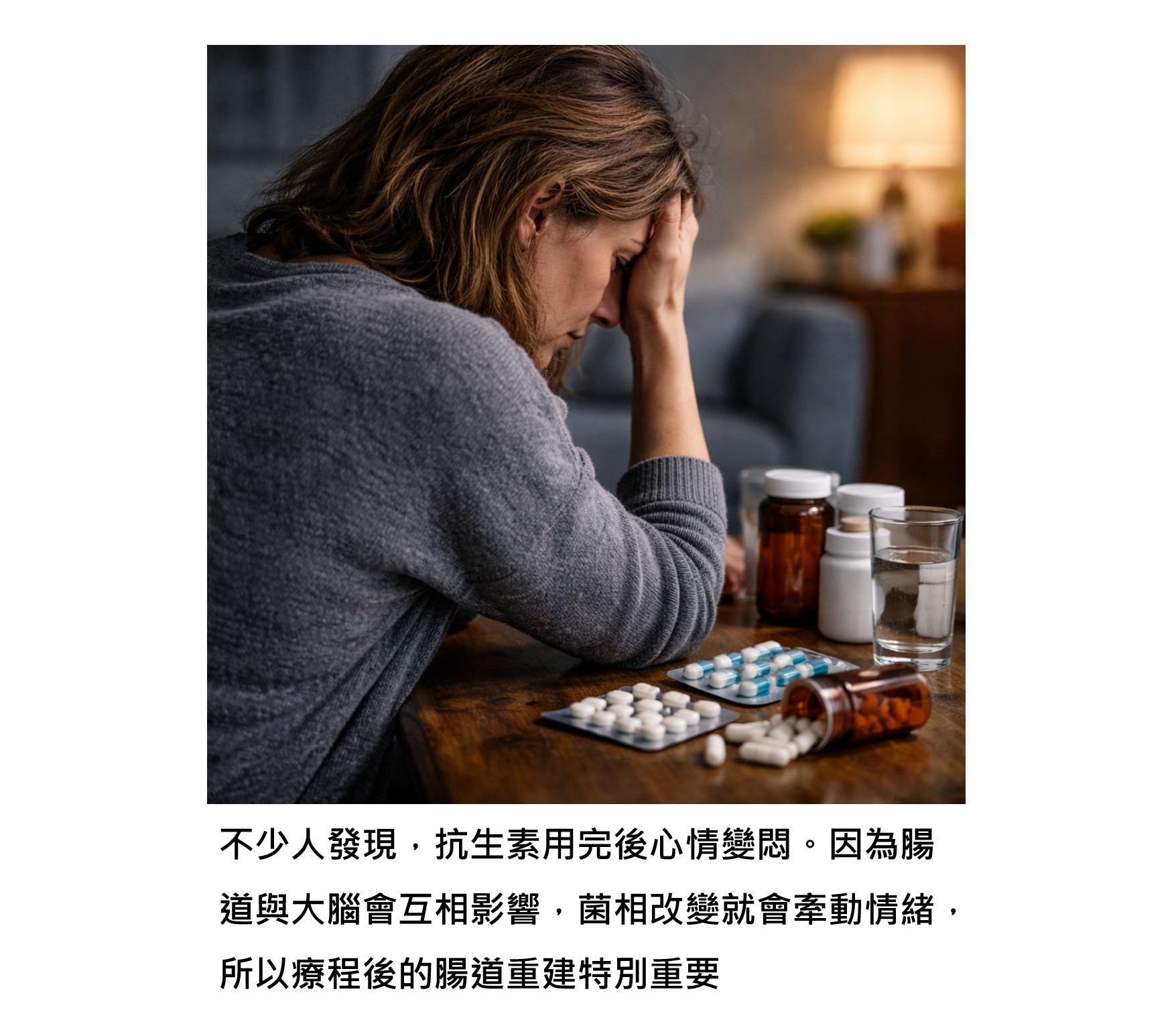 但是,抗生素在消滅壞菌的同時,也會一起影響腸道裡原本幫助我們的好菌。菌相多樣性會下降,短鏈脂肪酸的產生會減少,腸黏膜修復能力會暫時變弱。這些改變,會讓免疫系統變得比較敏感,也會影響神經傳導物質的環境,於是情緒穩定度就可能跟著起伏。