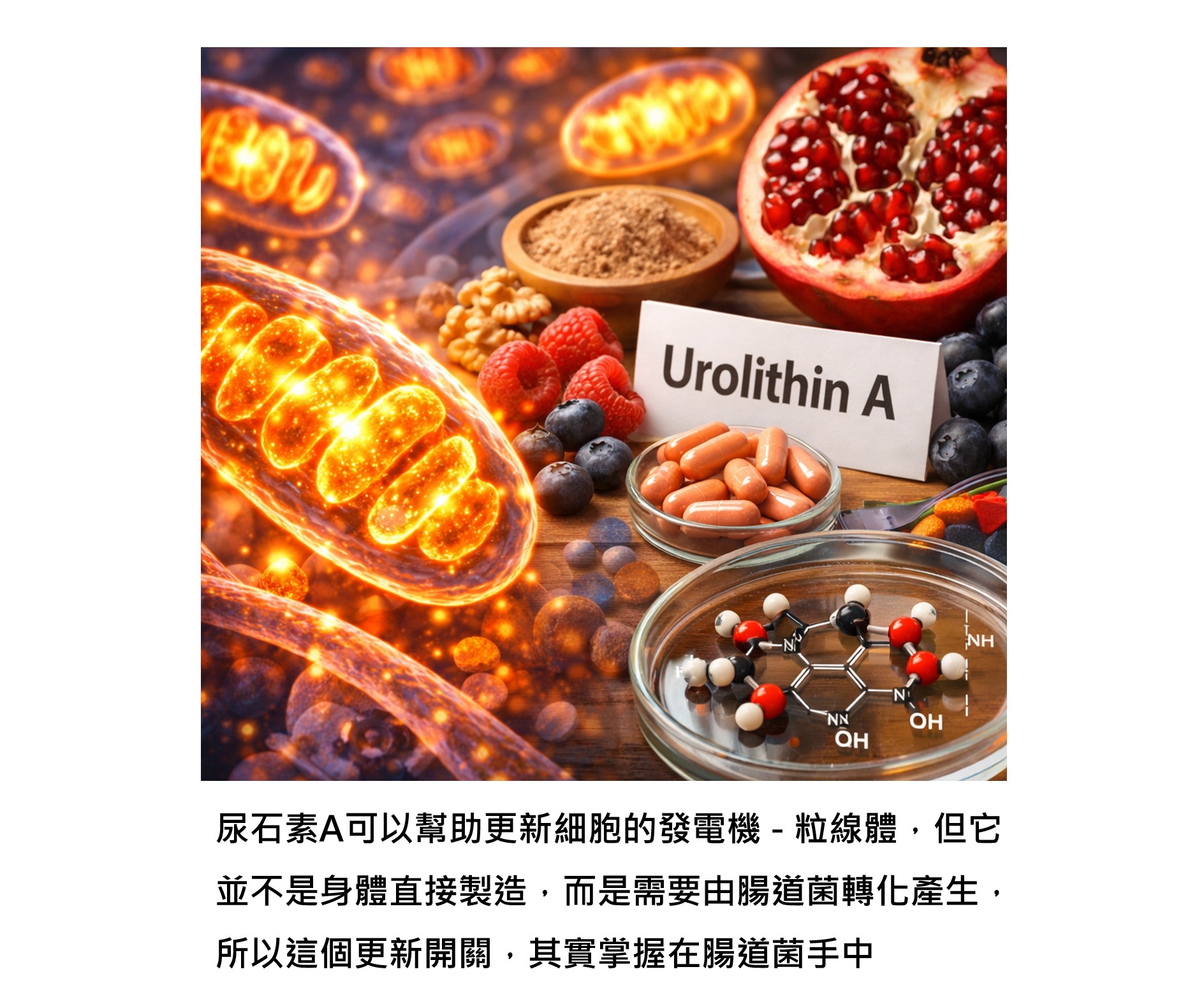 講到這裡,要提到一個重要的分子 - 尿石素A(urolithin A)。